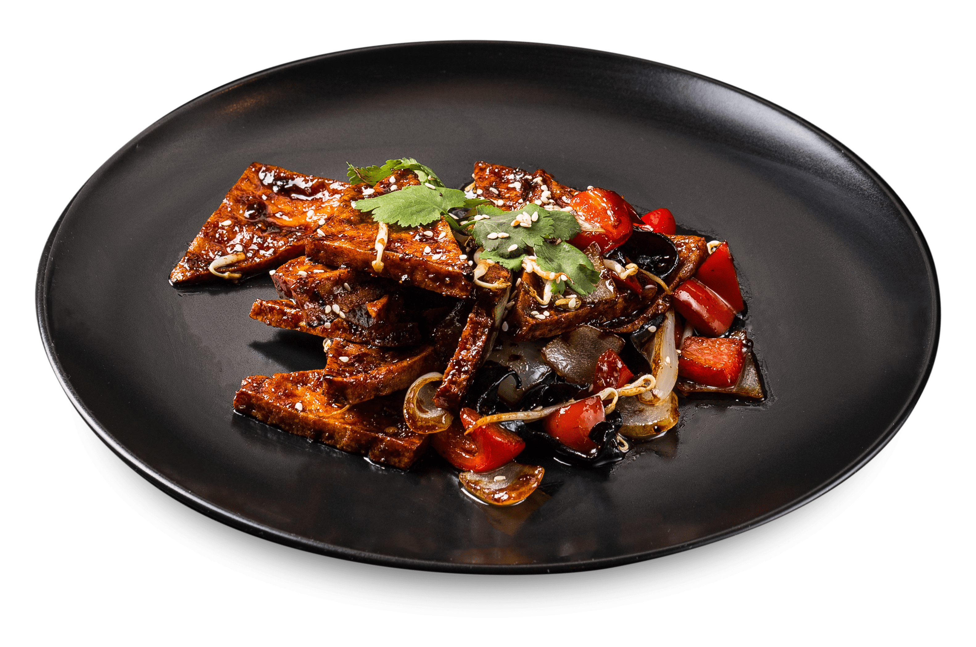 сыр тофу, перец болгарский, лук репчатый, грибы муэр, чеснок, зелень, фирменный соус