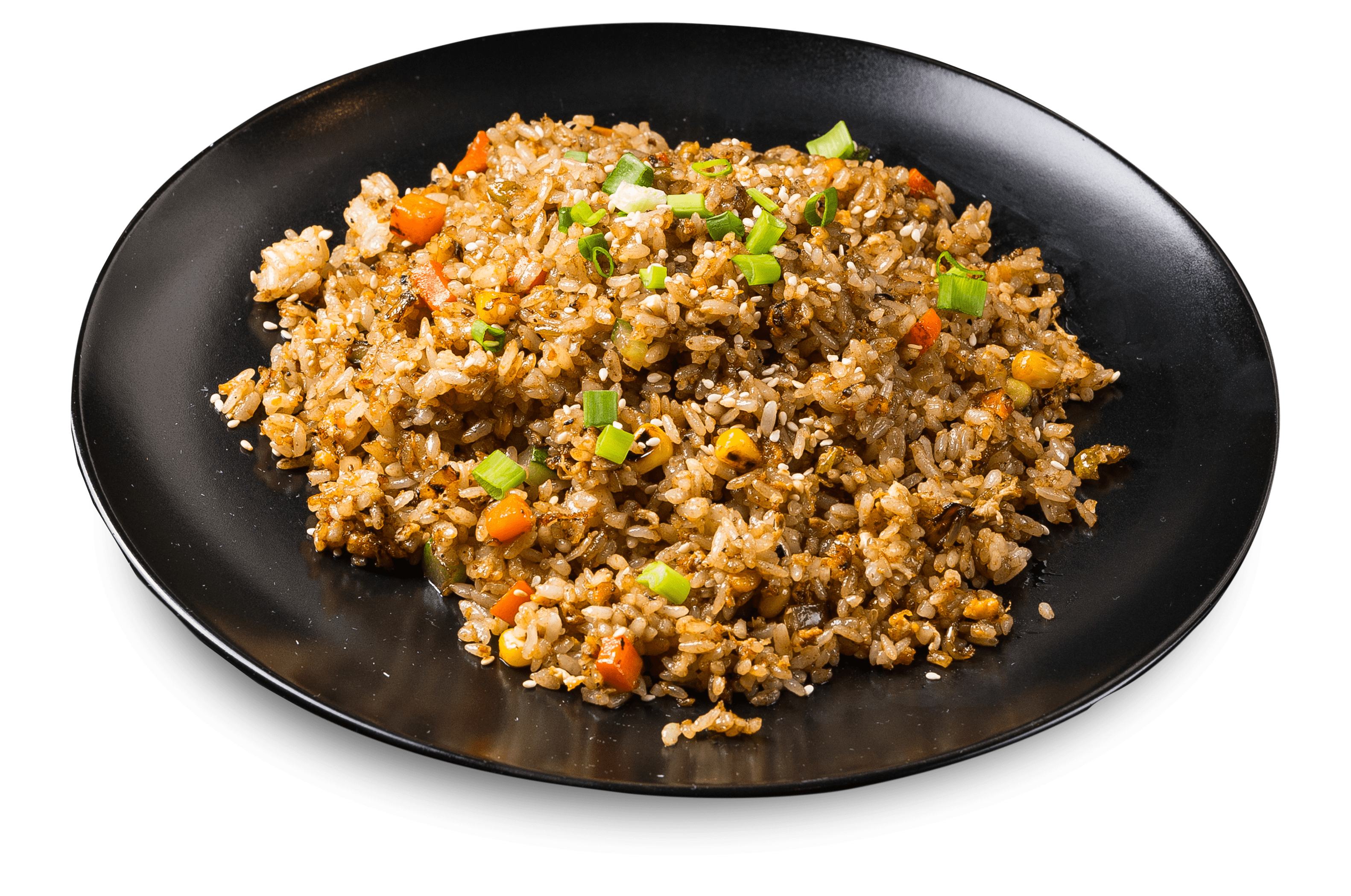 380 g Тайский рис, перец болгарский, морковь, зеленый лук, зелень, кукуруза, горошек, огурцы, фирменный соус