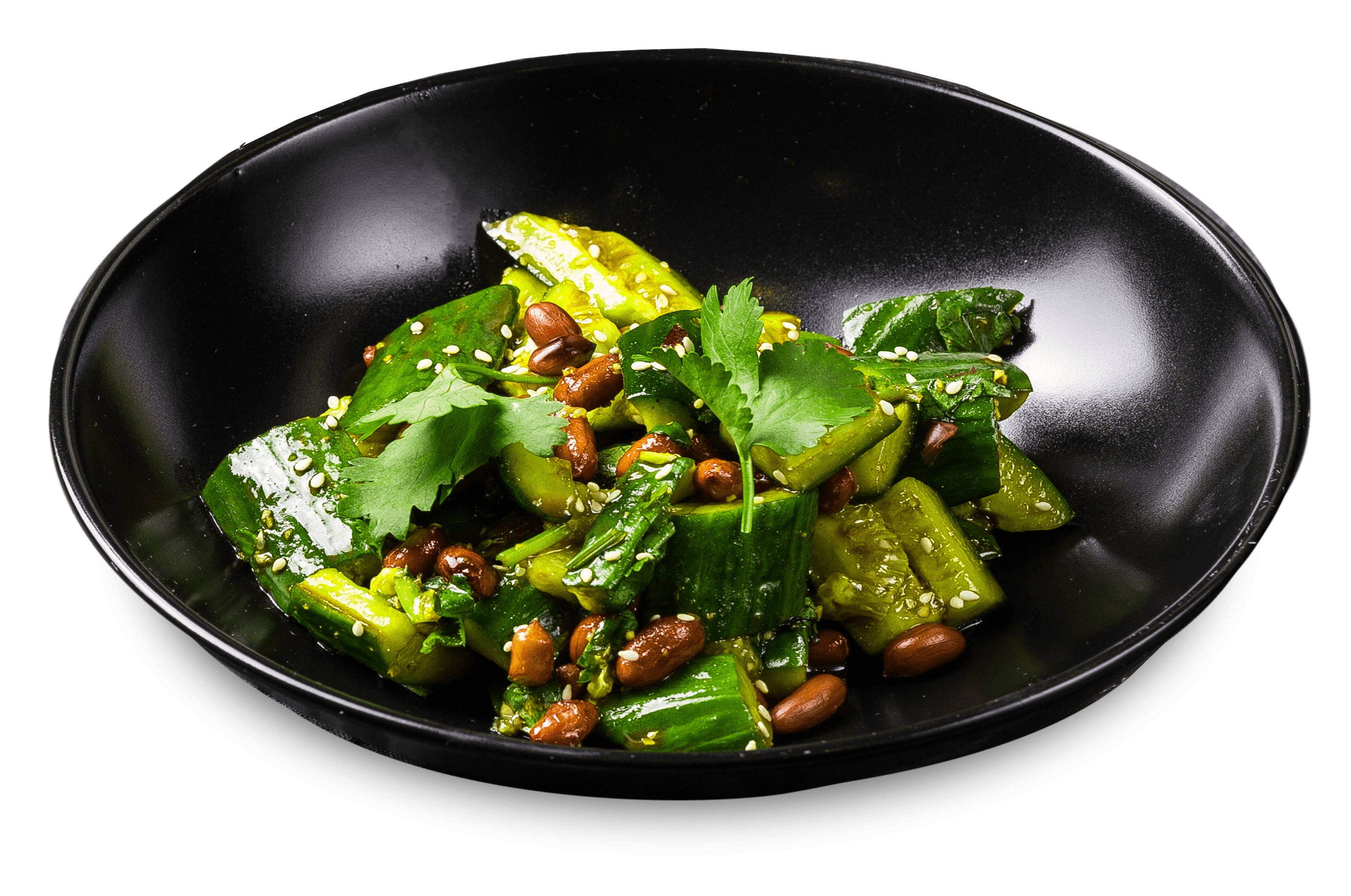 огурцы, чеснок, кинза, арахис, тайский фирменный соус и специи, семена кунжута