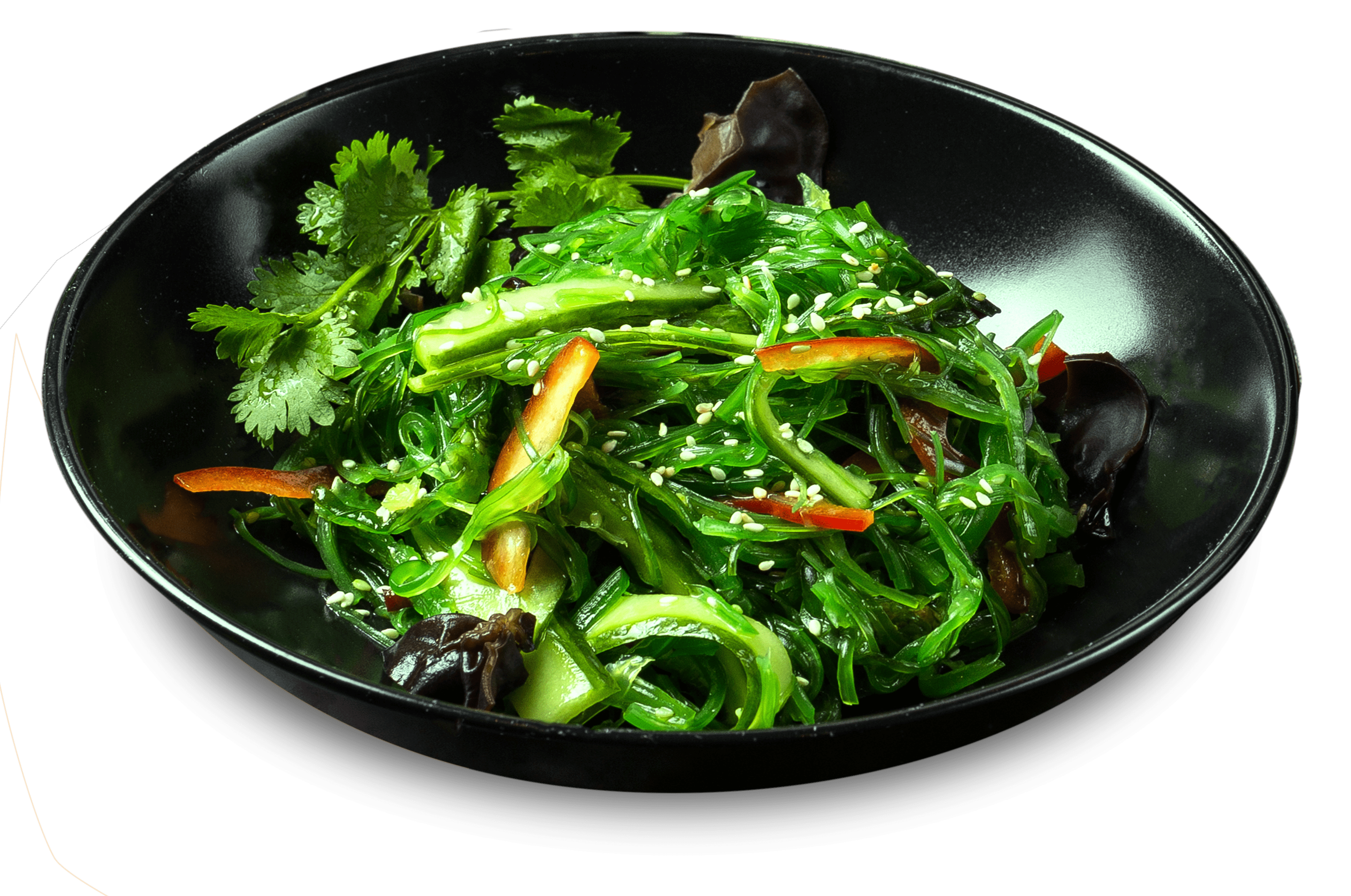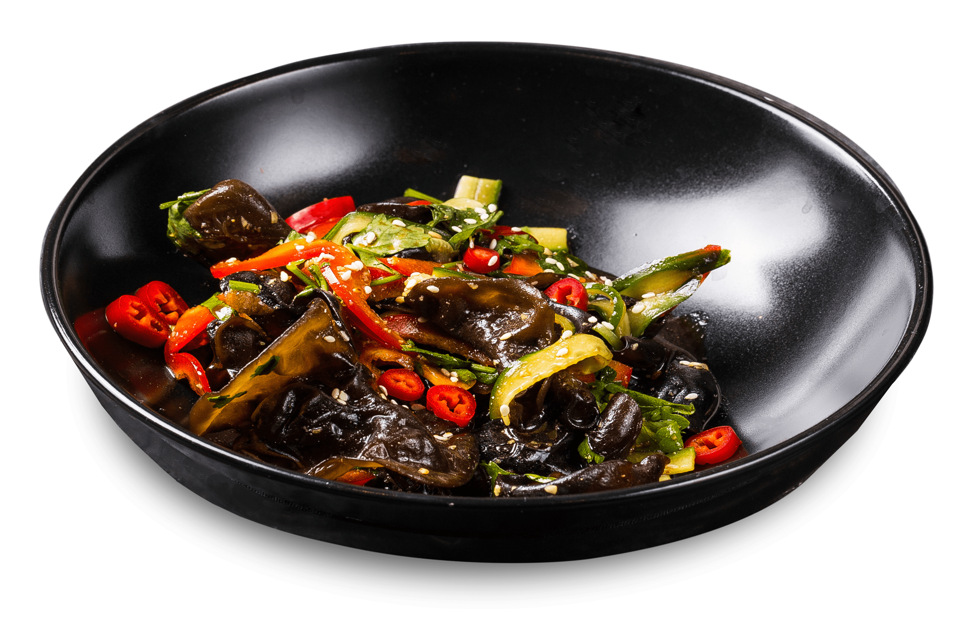 морские водорсли чукка, перец болгарский, древесные грибы, фирменный соус