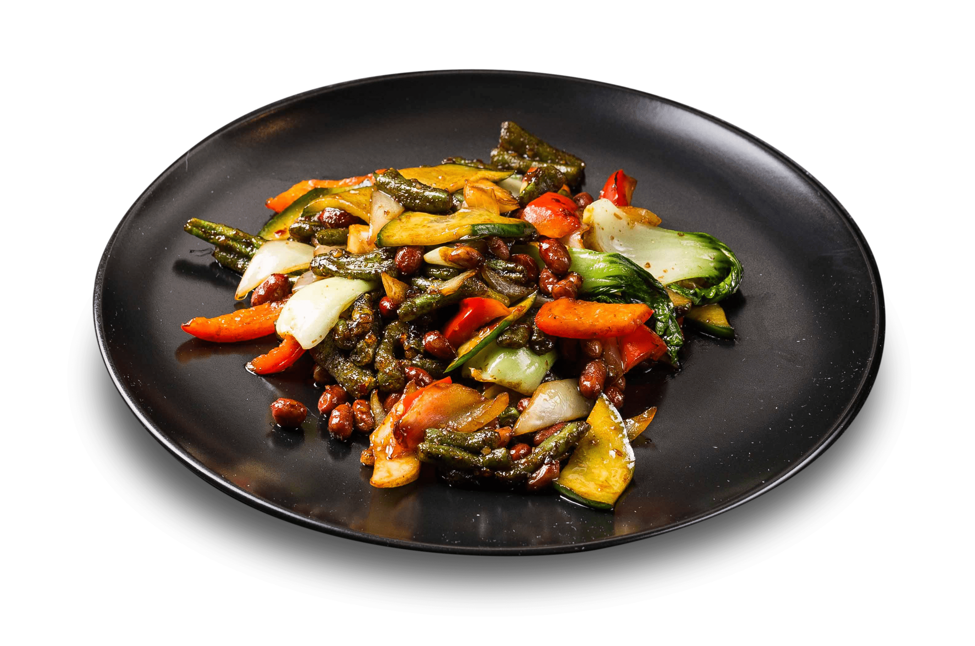 350 g перец болгарский, лук репчатый, стручковая фасоль, зелень, фирменный соус